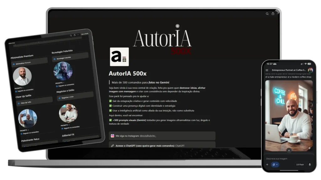 Você acorda, pega seu celular, abre o material que eu vou te entregar, escolhe um dos comandos prontos, cola na IA e PRONTO.